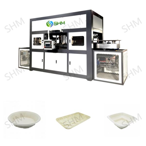 SHM automatic biodegradable molded pulp tableware production line is a manufacturing system designed to produce biodegradable tableware and packaging products from recycled paper or cardboard pulp in an automated and efficient manner. This production line typically consists of a series of interconnected machines and equipment that transform raw materials into a variety of disposable and eco-friendly items such as plates, bowls, trays, cups, and more.